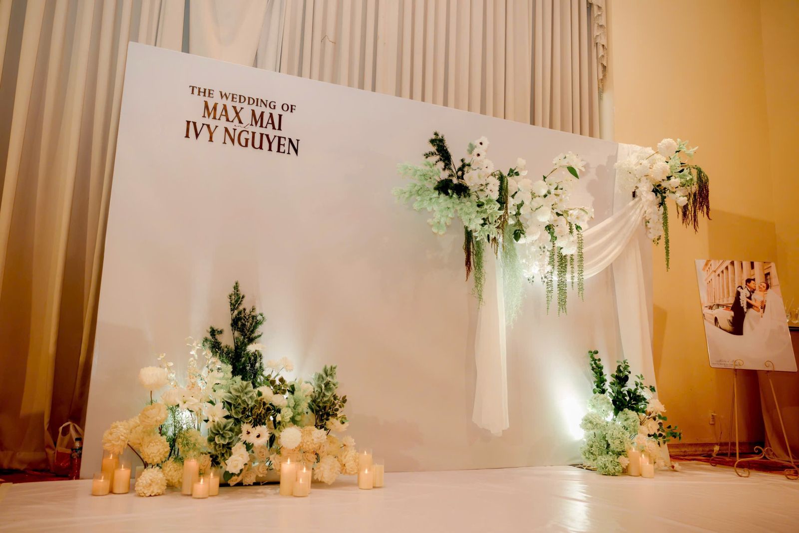 - Đôi khi chỉ cần biến tấu nhẹ một chi tiết nhỏ (màu hoa, chất liệu backdrop, font chữ bảng tên...) là đã đủ mang hơi thở mới mẻ cho không gian cưới