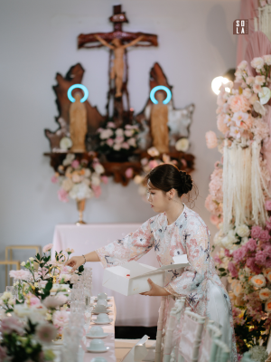 Trong văn hóa cưới hỏi truyền thống, không gian gia tiên không chỉ là nơi thực hiện nghi lễ mà còn là nơi lưu giữ những khoảnh khắc thiêng liêng nhất của hai bên gia đình. Với concept trang trí gia tiên tone hồng, Sola Wedding mang đến một không gian nhẹ nhàng, tinh tế nhưng vẫn đầy đủ sự trang trọng và ấm cúng.