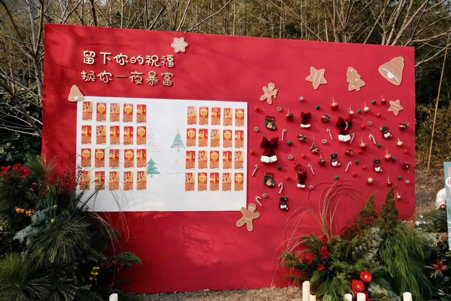 Từng chiếc nơ, quả châu, ngọn nến, chùm lá thông đều được bố trí theo tỷ lệ vàng, đảm bảo mỗi góc chụp đều đẹp hoàn hảo – dù là ban ngày hay buổi tối.