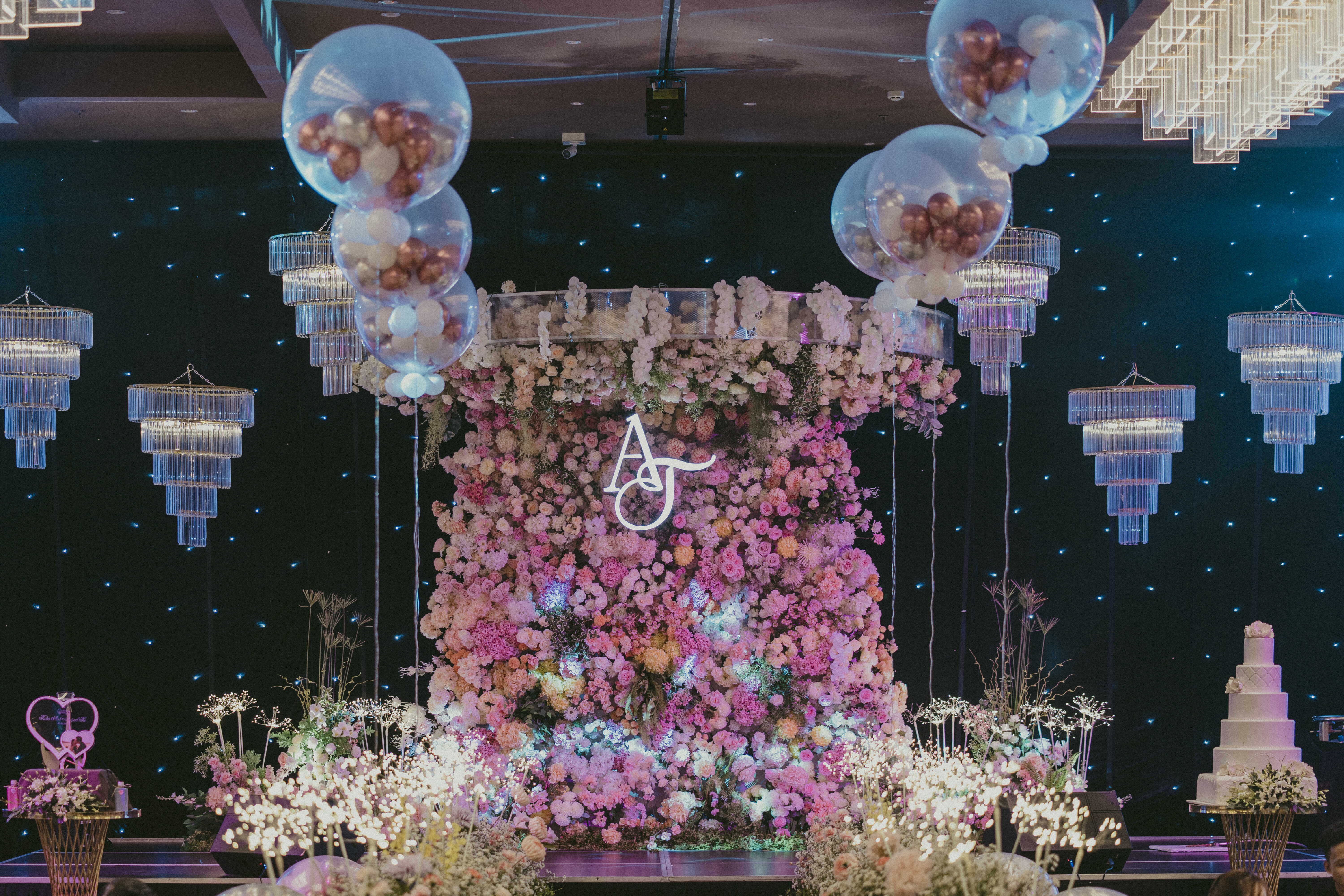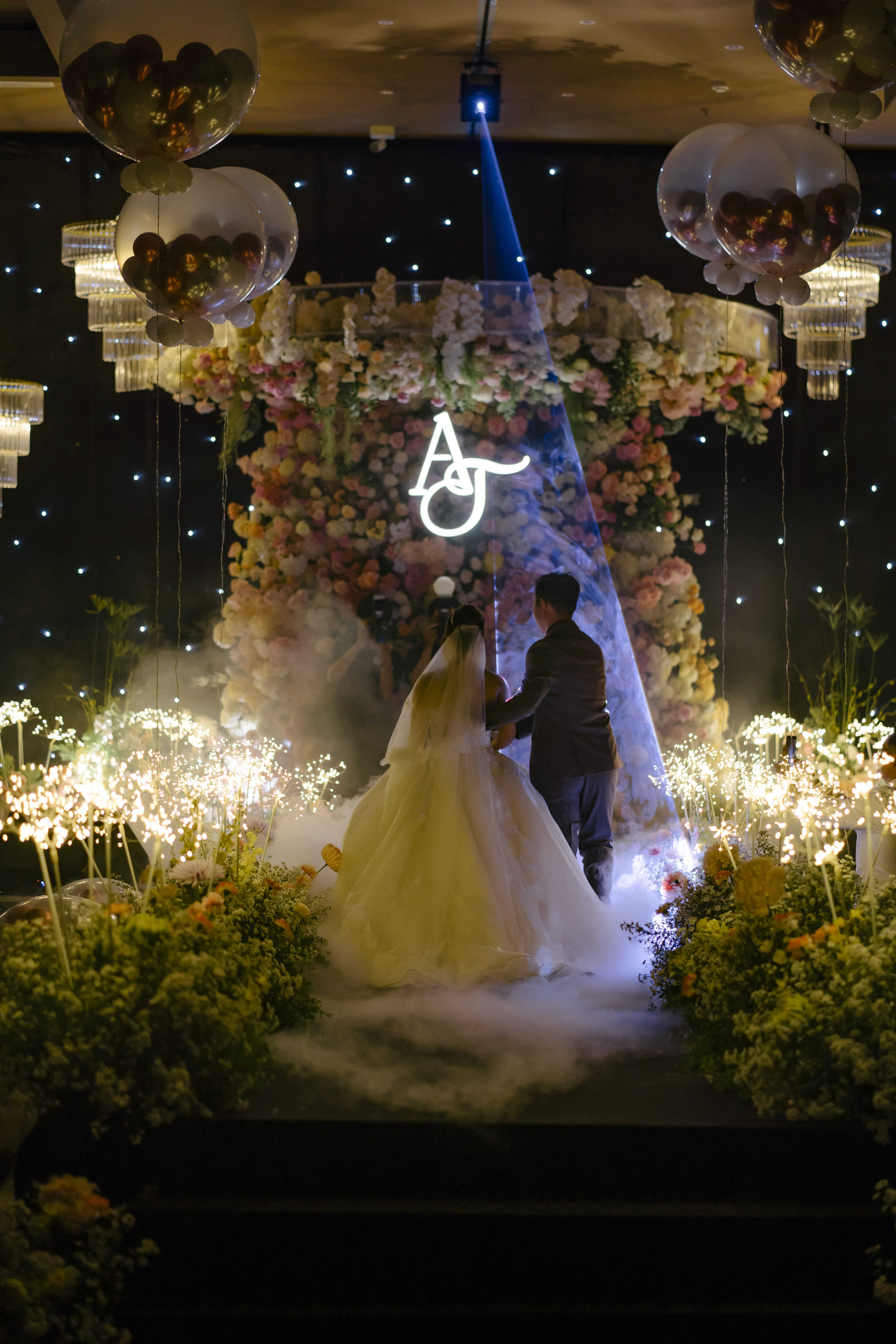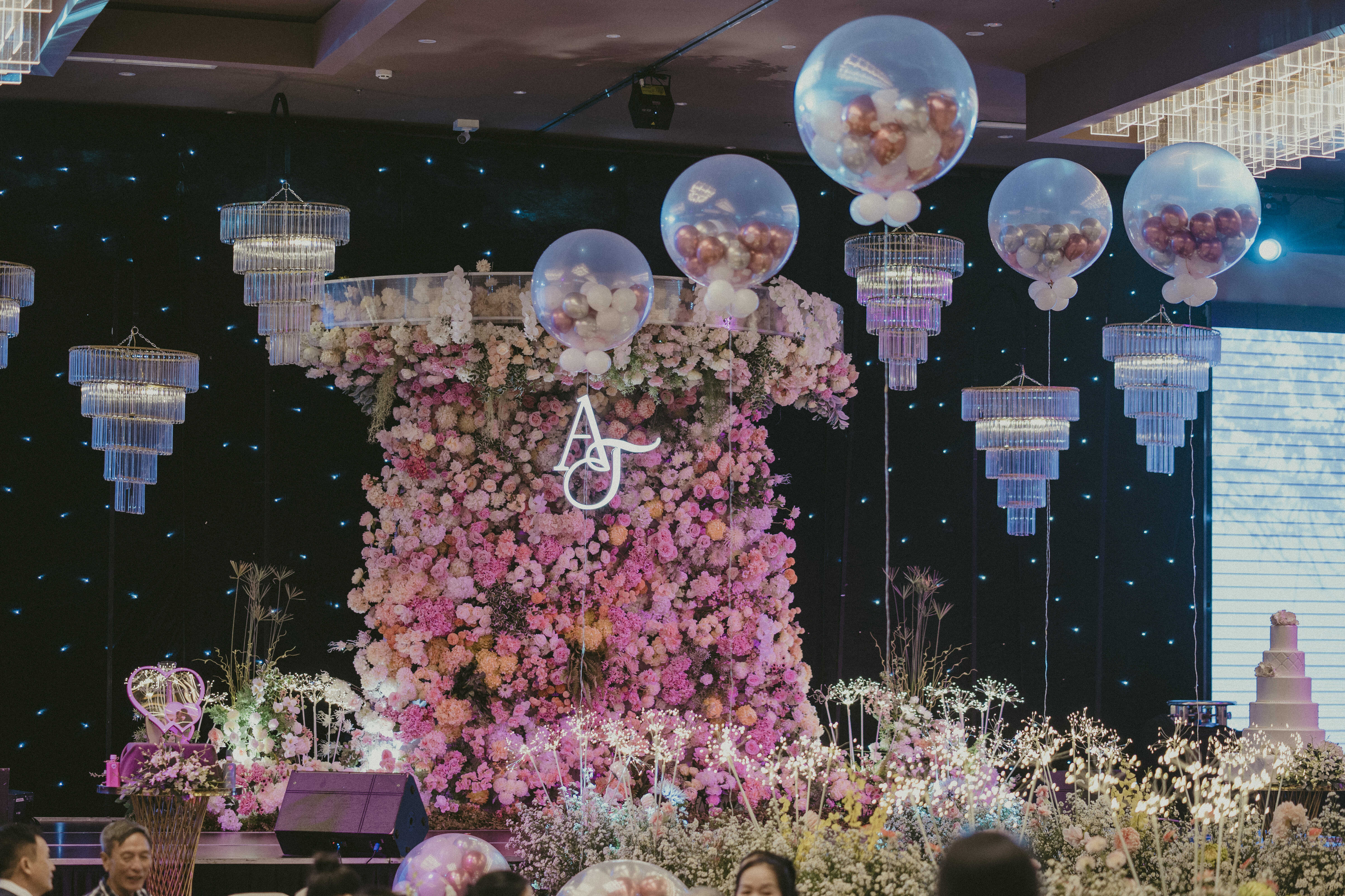 Tại Capella Park View, Sola mang đến một không gian cưới đỉnh cao của cảm xúc – nơi mỗi khoảnh khắc như bùng nổ trong ánh sáng, âm thanh và sắc hoa. Sân khấu được phủ kín bởi hoa hồng pastel, hòa quyện cùng hàng trăm ngọn đèn pha lê lấp lánh. Điểm nhấn ấn tượng nhất chính là dàn bóng kích nổ được sắp đặt tinh tế, tạo nên màn trình diễn “bùng nổ hạnh phúc” khiến cả khán phòng vỡ òa trong tiếng vỗ tay và niềm vui rạng rỡ.