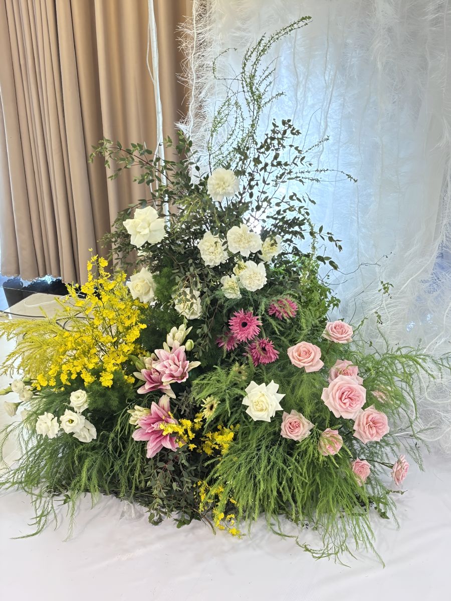 Chúng tôi tin rằng mỗi câu chuyện tình yêu đều là độc nhất, và không gian lễ đường phải phản ánh được điều đó. Dịch vụ của chúng tôi tập trung vào việc lắng nghe và thấu hiểu mong muốn của bạn để kiến tạo nên một không gian cưới không chỉ đẹp mắt mà còn chứa đựng ý nghĩa sâu sắc. Từ cổng hoa đón khách, khu vực backdrop chụp ảnh, bàn gallery trưng bày kỷ vật, cho đến sân khấu lộng lẫy và lối đi lung linh, mỗi hạng mục đều được chăm chút tỉ mỉ để tạo nên một tổng thể hài hòa và ấn tượng.