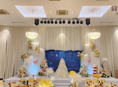 Ánh đèn nhẹ nhàng hòa cùng sắc hoa giúp toàn bộ không gian trở nên ấm áp, nơi từng khoảnh khắc của cô dâu chú rể được tỏa sáng trong ngày trọng đại.